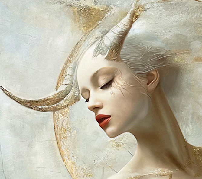 Ecliptic Grace captures a moment of transcendence where the human form dissolves into light. Jehan Legac explores the boundaries between matter and spirit, using texture and luminosity to evoke both fragility and divinity.